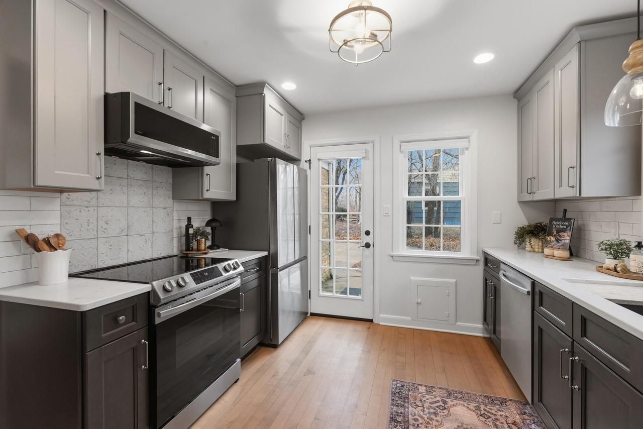 MODERN CHIC - VINTAGE CHARM Completely remodeled and move-in ready, this 1939 French Provincial-inspired show model blends historic charm with modern updates. The brand-new, light filled kitchen features new cabinetry, counters, appliances, and quarter-sawn maple floors. Both baths have been renovated with natural stone and tile finishes. Major improvements include a new roof, all new windows, updated mechanicals, fresh paint, refinished wood, and new basement flooring. The heated garage with a glass door offers flexible space for a gym, studio, or workshop. Two bedrooms, two full baths, and a half bath on an extra-large city lot in a prime in-town location....Trader Joe's & Target just down the street!